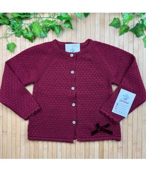 Rebeca de lana con detalle de lazo de terciopelo. Color burdeos.