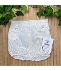 Conjunto de dos piezas. Camisa de manga corta con cuello mao y detalle de jaretas. Braga con detalle de falso bolsillo. Color blanco.