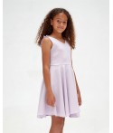 Vestido liso de color malva con manga sisa y tiranta con flores.