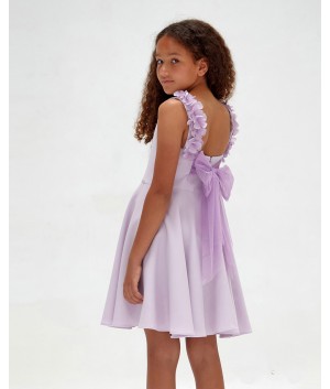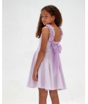 Vestido liso de color malva con manga sisa y tiranta de flores.