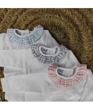 Bodi de manga larga, de algodón con cuello de vichy. Color celeste.