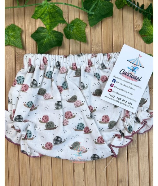 Braga de algodón con volante trasero de encaje. Color blanco.