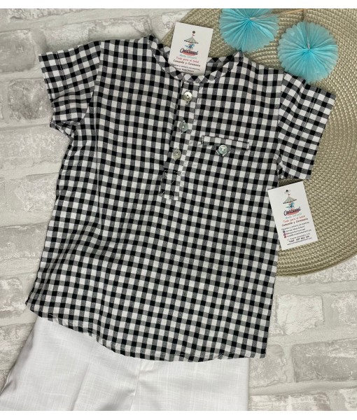 Camisa de manga larga con cuello mao con detalles de bodoques. Color nata.