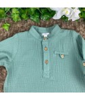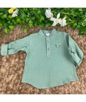 Camisa de bambula de manga larga y cuello mao. Color verde jade.