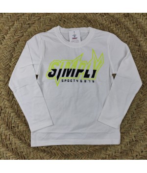Camiseta de manga larga color beige con palabra "Simply" en rojo, mostaza o flúor.