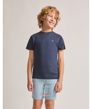 Camiseta lisa confeccionada en algodón con cuello redondo, manga corta y logo de la marca grabado al tono en el frontal. Corte regular fit.