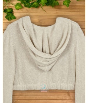 Chaqueta corta de manga larga con lazo en la espalda. Color beige.
