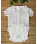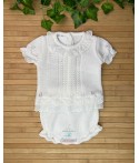 Conjunto de hilo de braguita y manga corta. Cuello y mangas de tira bordada. Color blanco.