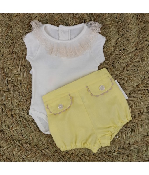 Conjunto de pichi y camisa: Camisa lisa con cuello rosa, pichi de falda con braga incorporada.