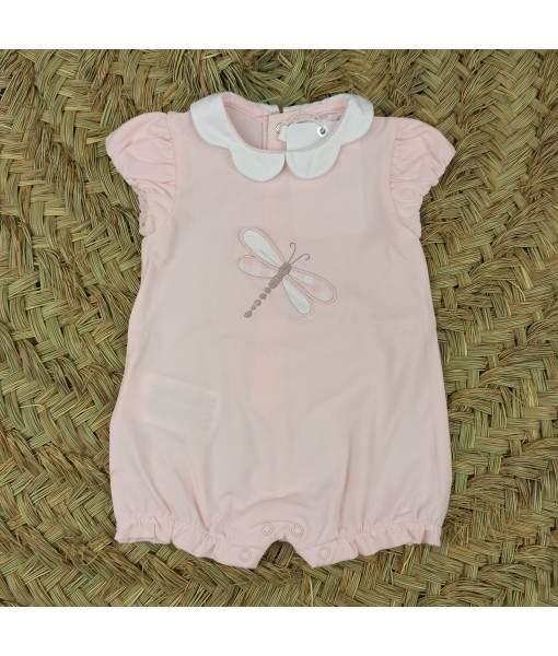 Pelele 95% algodón y 5% elastano de manga corta, abertura en la parte trasera y piernas.