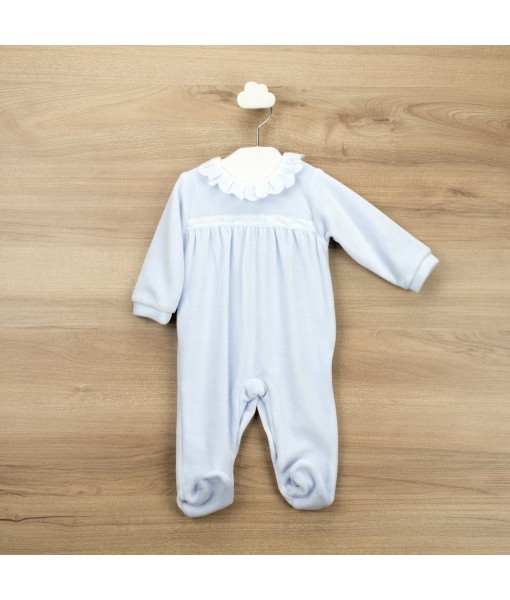 Pelele de punto de manga larga con cuello volante. Color azul marino.
