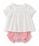 Conjunto bebé con blusa plumeti y braguita rosa. Dulce, fresco y en liquidación.