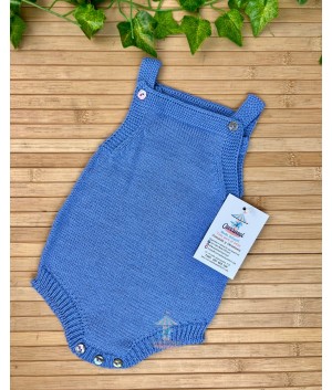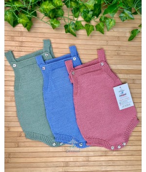 La ranita de punto con tirantes es una prenda encantadora y versátil, confeccionada en un suave hilo de color azulado, verde seco y blanco, que le aporta un aspecto fresco y natural. Ideal para los días cálidos, esta ranita es perfecta para mantener a tu bebé fresco y cómodo, mientras luce un estilo adorable y único.
