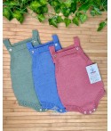 Pelele de hilo de tirantas con botones. Color amarillo.