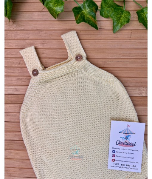 Pelele de hilo de tirantas con botones. Color amarillo.