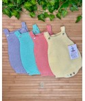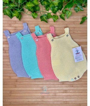 Pelele de hilo de tirantas con botones. Color azulado.