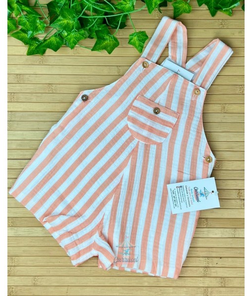 Ranita con tirantes abotonada por delante. Color mandarina con rayas blancas.