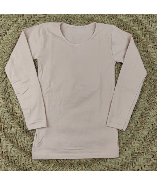 Camiseta interior lisa de manga larga. Color tono piel.