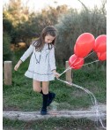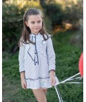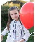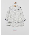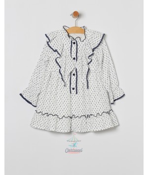 Este encantador vestido de manga larga combina los colores blanco y azul marino con un estampado de tulipanes que aporta un aire fresco y primaveral. Confeccionado en un tejido suave y cómodo, el vestido destaca por su detalle de cuello volante, que añade un toque de elegancia y sofisticación al diseño. Ideal para ocasiones especiales y eventos formales, este vestido es una elección perfecta para quienes buscan un estilo clásico con un toque moderno y encantador.