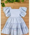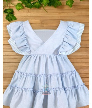 Este encantador vestido de niña, confeccionado en lino color celeste, es perfecto para cualquier ocasión especial. Diseñado con mangas sisa y volantes que adornan los hombros, ofrece un estilo fresco y delicado. La espalda en "V" añade un toque sofisticado al conjunto, haciéndolo ideal para eventos donde se busca elegancia y comodidad. Su material ligero y transpirable asegura que las pequeñas se sientan cómodas mientras lucen adorables. Un vestido que combina simplicidad y encanto en cada detalle.