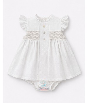 Elegante jesusito para bebé en color blanco, confeccionado en tejido plumeti que aporta textura y un acabado delicado y sofisticado.